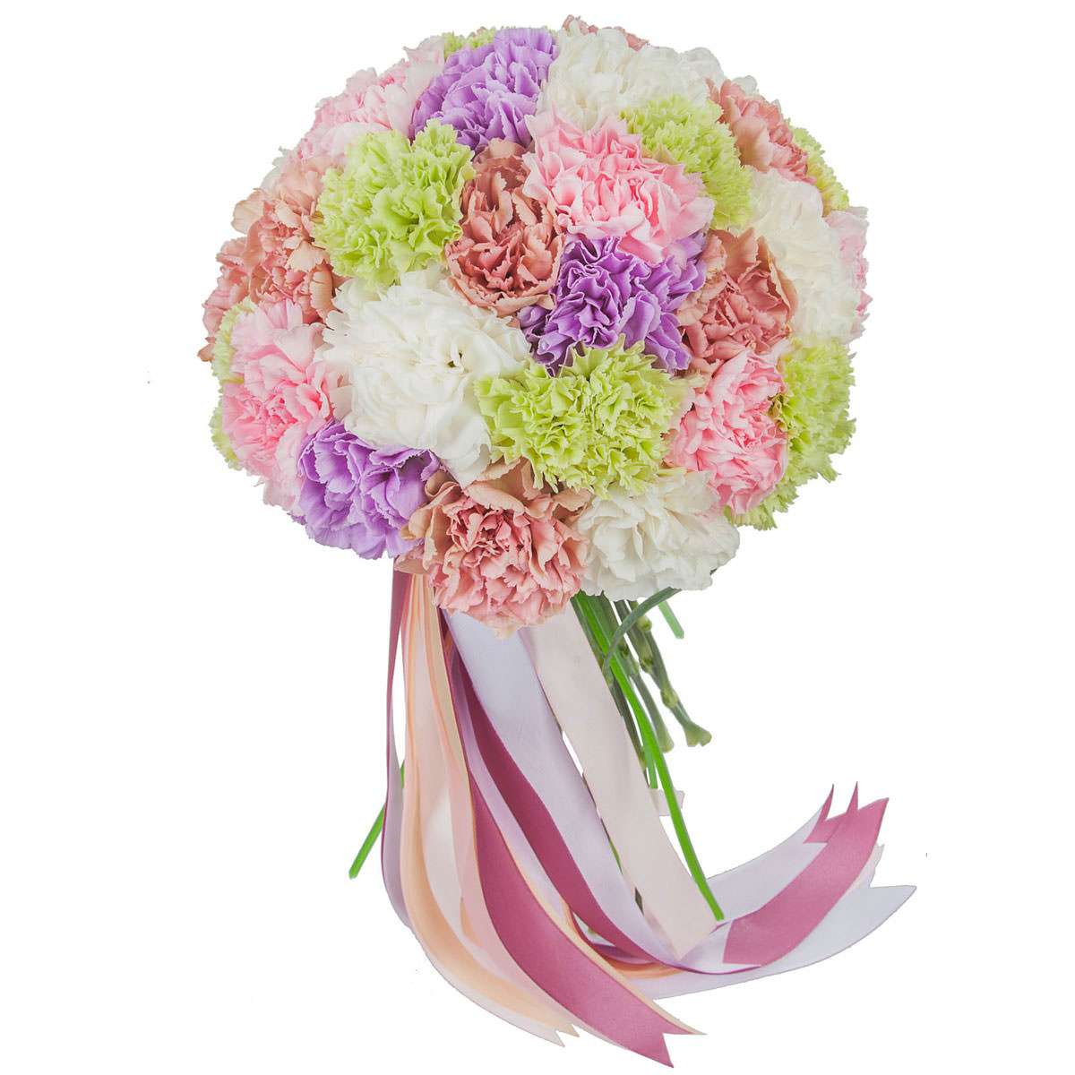 Гвоздики белые, зеленые, фиолетовые, розовые, бордовые